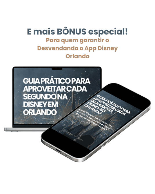- Bônus: E-book com dicas práticas e estratégias simples que irão transformar sua experiência nos parques da Disney em Orlando